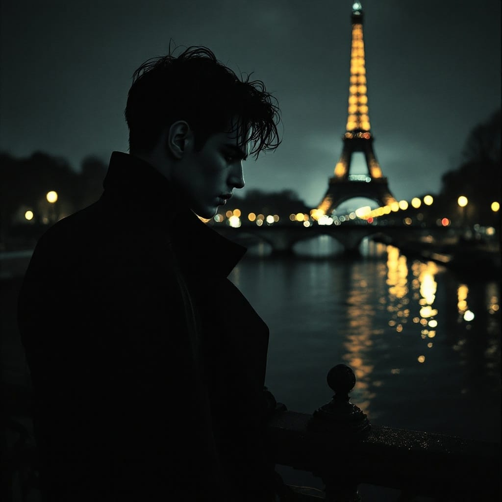 Dreamy French electro-pop with male vocals, shimmering synths, chic beats, and sensual bass grooves, Romantic, upbeat vibes perfect for moonlit dances in Paris blending nostalgia with futuristic charm