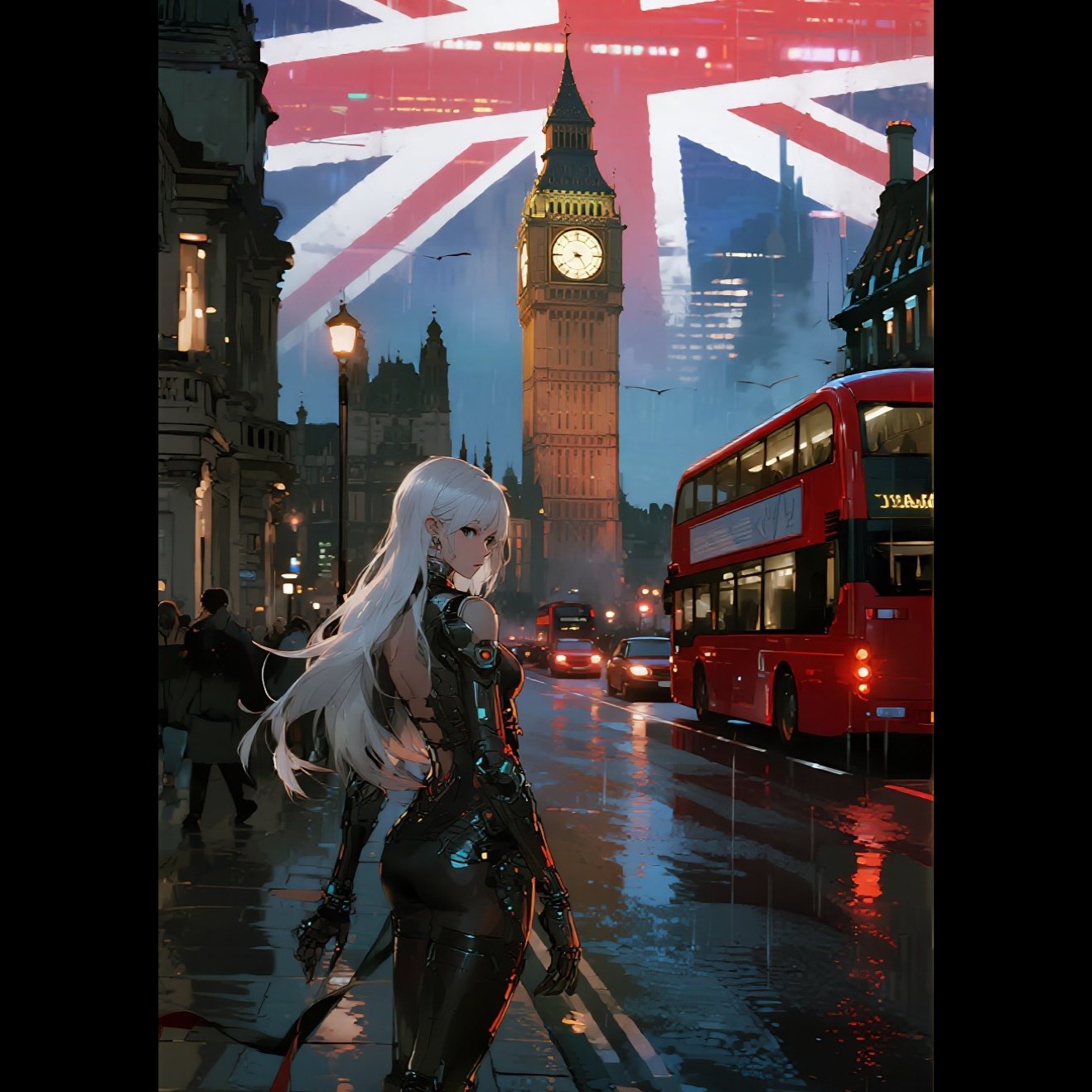 High-energy Frenchcore track around 200 BPM inspired by Dr, Peacock travel series, Intro begins with atmospheric London sounds: distant rain, city ambience, Big Ben style bell tone and filtered pads, A cinematic orchestral melody slowly builds before exploding into aggressive Frenchcore kicks, Fast distorted kick drums drive the rhythm while euphoric synth leads play a melody inspired by British folk and rave culture, Mid section introduces UK rave influence with breakbeat style drums layered under the Frenchcore kick, creating a hybrid groove, Vocals are energetic and melodic, telling the story of a night trip through Great Britain, London streets and rave culture, Breakdown features emotional orchestral strings and choir pads evoking foggy British atmosphere before a massive build-up with rising synths and snare rolls, Final drop is the most powerful part with bright leads, heavy kicks and chant style vocals "Trip to Great Britain"
