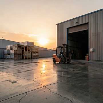 Outlaw country slow-to-mid tempo ballad, cinematic warehouse atmosphere, male conversational vocal with restrained emotion, acoustic guitar fingerpicking, soft electric twang accents, subtle pedal steel, brushed drums, warm bass, reflective tone, early morning shift at loading dock, forklift operations described with precision and tension, storytelling focus, slightly dramatic but grounded working-class realism, 1970s Americana production style, dawn lighting mood, calm but purposeful energy