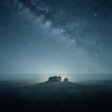 A solitary figure lies in a vast, empty field under an endless dark sky shimmering with stars, Profound loneliness meets gentle tranquility in the embrace of nothingness, Pure instrumental: soft, introspective solo piano leads with delicate, flowing arpeggios and sparse, tender chords — melancholic yet deeply soothing, Subtle acoustic guitar strings occasionally drift in like faint starlight, adding quiet warmth and shimmer, No vocals, no percussion, Very slow tempo, generous space between notes, serene emptiness, bittersweet calm, Cinematic ambient atmosphere of peaceful isolation