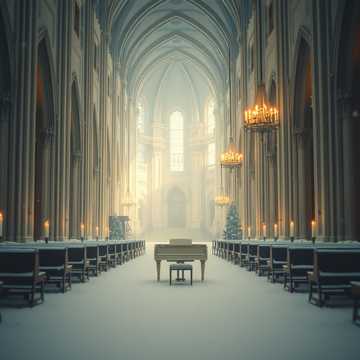 Core: velvet solo piano (warm felt or Yamaha C7 with half-pedal) + ethereal solo violin and 2–3 gentle violins playing long, breathing legato lines, Very slow 48–56 BPM, free rubato, almost floating, Piano plays delicate, rolling broken chords and soft add9/sus2 arpeggios in left hand, right hand carries a tender, singable melody that rises and falls like slow ocean waves, Violin answers and overlaps with heartbreakingly soft, portamento-rich counter-melodies, always staying in pianissimo, Huge dreamy reverb, like playing inside an endless snow-covered cathedral at 3 a, m, Keys: Db major ↔ B major ↔ Gb major, seamless modulations, No percussion, no low bass, only warmth and air, Occasional single high harmonic on violin glimmers like starlight, Dynamics never above piano, 7–10 minutes, ends on unresolved luminous chord that dissolves into silence, Pure emotional safety, womb-like, weightless, tearfully beautiful