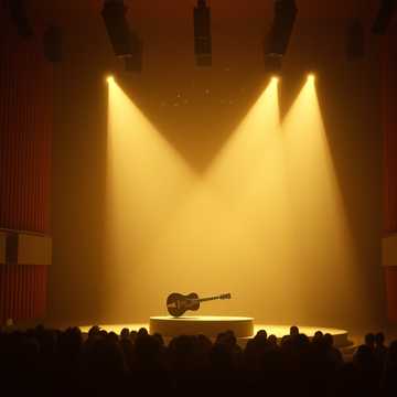 A profoundly immersive ambient guitar piece for deep, dreamless sleep, performed live in an intimate concert hall, Fingerstyle acoustic guitar leads with slow, hypnotic open-tuned arpeggios and gentle chord voicings in a low, warm minor key—notes blooming and decaying like soft exhalations, Subtle e-bow sustains and distant violin string harmonics drift in midway, adding ethereal, barely-there layers that shimmer like starlight on water, The arrangement never rises above a whisper, tension dissolving into endless calm, Captured with lush hall reverb, faint audience breathing, and the occasional creak of wooden chairs for authentic live presence—always soothing, never startling, Tempo: 40-50 BPM, dynamic range ppp to pp, Style: neoclassical ambient, cinematic sleep aid with intimate, woody resonance