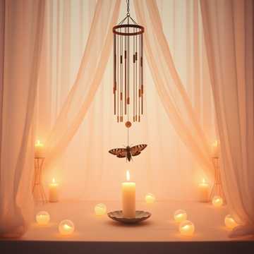 Mid-frequency layer: Spiritual chanting, human whispers, drum sounds, spatial reverberation, echoes, guzheng, hand drum