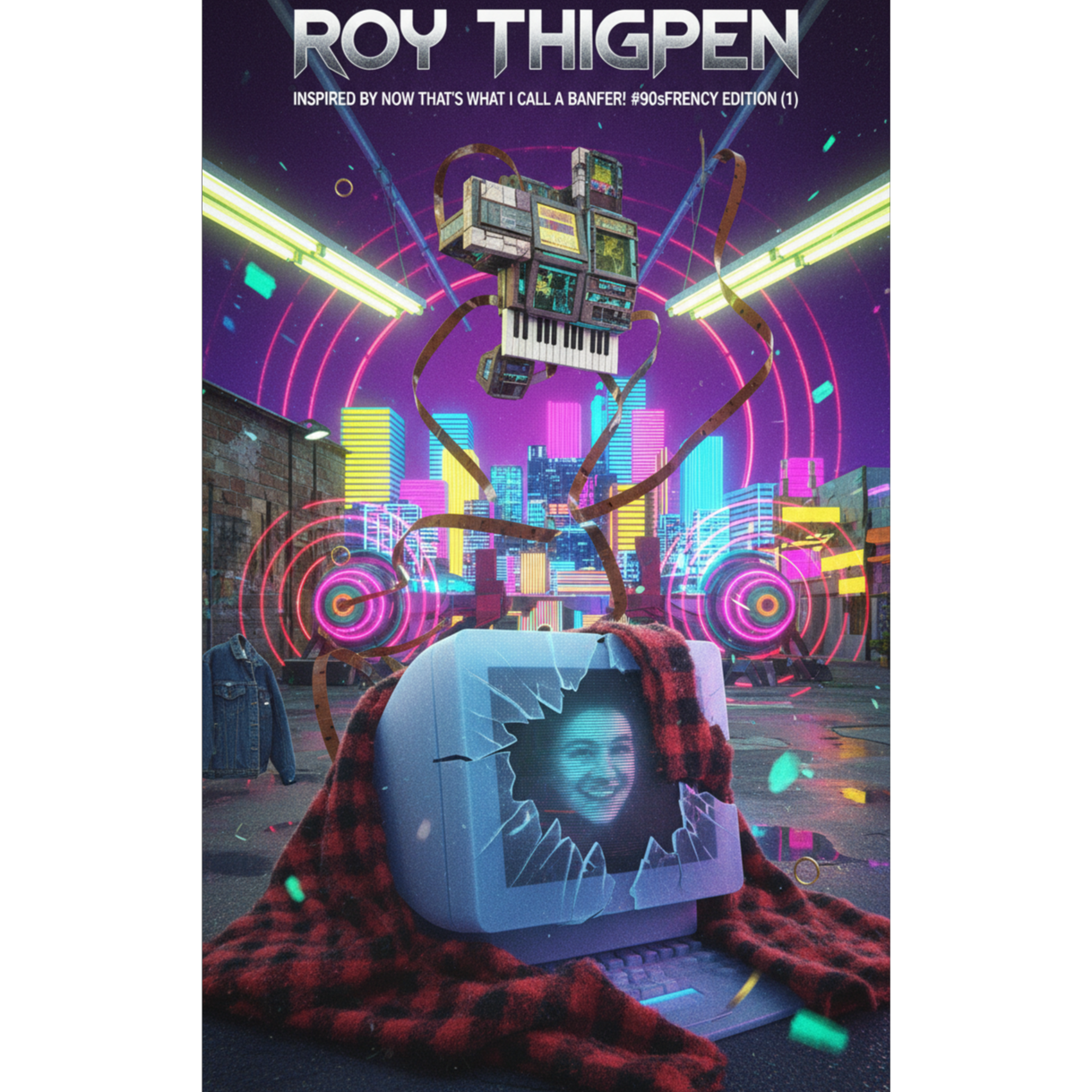 A dynamic 1990s genre-shifting medley, Transitions through: High-BPM Eurodance with M1 piano and 909 kicks; Grungy Seattle Rock with distorted fuzz and mumbled-to-screamed vocals; Miami Bass with booming 808s and cowbells; Cinematic Soul Power Ballad with soaring melisma and saxophone; Jam Band Folk-Jazz featuring percussive acoustic guitar, fiddle, and complex bass; Symphonic Cinematic Hip-Hop with orchestral strings; Melodic Acoustic Pop; Southern Gospel with choir arrangements; Fast-paced Comedic Nerd-Pop; and Melancholic Funk Rock with clean soulful guitar and slap bass, High production value, era-specific mastering