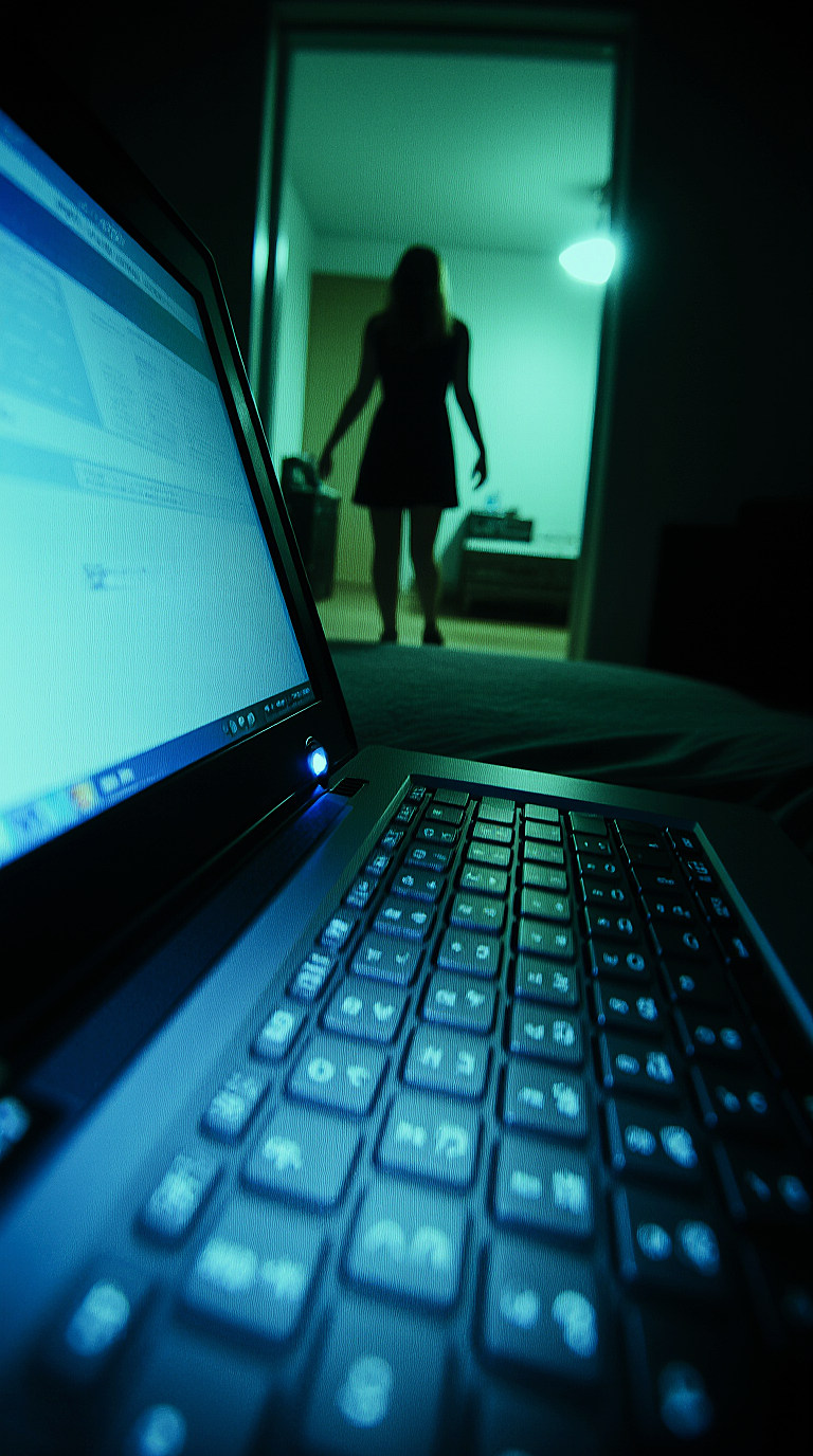 This track layers deep sub-bass and buzzing, glitched beats with sharply panned 3D audio effects, immersing the listener in a sinister, enveloping soundscape, Soothing female vocals float above menacing textures—knife-scraping foley and glitch FX swirl around urgent staccato violin arpeggios and dark cello progressions, creating relentless pressure and an unsettling, horror-infused drive, ‑heavy autotune, ‑rap verses, ‑trap hi-hats, ‑edm drop, ‑dubstep bass, ‑bright pop synth leads, ‑comedy novelty voices, ‑big choir walls, ‑live atmosphere, ‑crowd chants