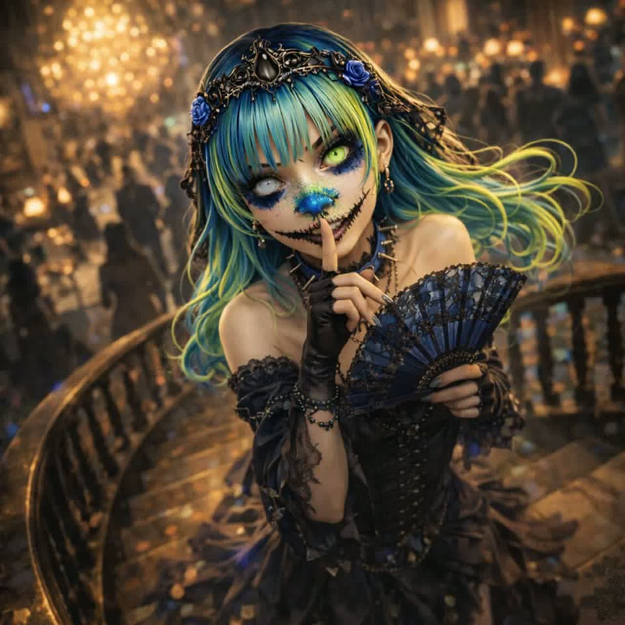 “This track layers deep sub-bass and buzzing, glitched beats with sharply panned 3D audio effects, immersing the listener in a sinister, enveloping soundscape, Soothing female vocals float above menacing textures—knife-scraping foley and glitch FX swirl around urgent staccato violin arpeggios and dark cello progressions, creating relentless pressure and an unsettling, horror-infused drive, ”