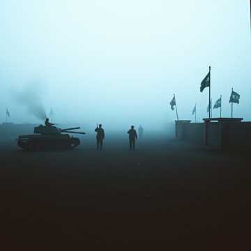 Cold, driving EBM groove with a rigid kick and metallic bass sequence, male choral ensemble stacked in stark Balkan-style harmonies, Verses stay tense and minimal with a single synth line pulsing; chorus explodes into wide, triumphant polyphony and octave drones, Occasional distorted stabs and filtered noise sweeps rise under held vocal chords, building to a cathartic, marching finale, ebm