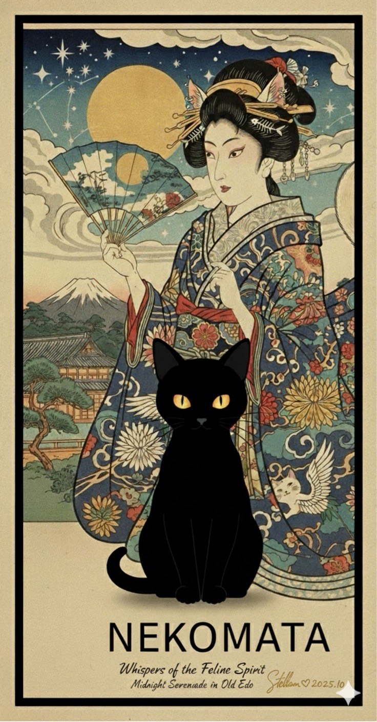 Japanese Mystery Thriller Song titled âHoshinoke: The Tale of the Nekomataâ, Tempo 130 BPM, minor key, Features fast Koto plucks, aggressive Shamisen strums, haunting Shakuhachi, deep Taiko drums, and Kagura bells, Energetic, tense, elegant, with a mystical edge, Vocal: young androgynous English voice, emotional and slightly theatrical, not deep or growling, Tone: dark, urgent, otherworldly, yet poetic, Atmosphere: moonless Edo night, ancient mansion, a cursed Nekomata wandering between love and vengeance, Include short chant-like sections with rhythm and echo