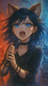 A chaotic, experimental fusion of Jungle breakbeat, Djent metal, Japanese Psycho Rock, and surreal cat horror, Fast BPM (170+), with frantic glitch drums, distorted djent guitars, and pulsating noise textures, Funk elements appear briefly but are twisted, warped, and corrupted â slap bass turns mechanical, wah guitars scream like sirens, Vocals: androgynous male voice oscillating between whispers, screams, and manic falsetto; sometimes fragmented into chopped syllables and reversed echoes, Lyrics in Japanese with scattered English phrases (âI see you, â âDonât blink, â âMeow in the darkâ), Theme: emotional overload, hallucination, the cat that sees everything â and laughs, The mix constantly shifts tempo and intensity, breaking into glitch breakdowns and noise walls, Final section: total sonic collapse, everything disintegrates into distorted noise and ends with a faint, eerie âmeow, â