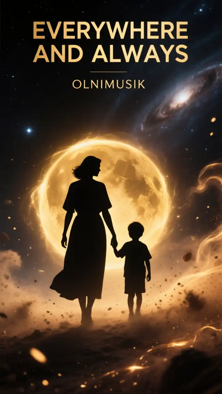 Cinematic symphonic composition, dramatic and atmospheric; no vocals or vocalizing in intro — purely instrumental opening with dark strings, distant brass, low piano, and soft rumbling drums, Then spoken dialogue between mother (low calm female voice) and child (soft innocent boy voice); realistic, emotional, near-spoken tone with subtle melodic flow, Tempo 74 BPM, Instrumentation: grand orchestra — strings, cello, horns, brass, woodwinds, timpani, cinematic percussion, light choir pad, ambient textures, Dynamics: slow tense intro grows into wide symphonic wave; mid-section climax during “rockets falling” — horns and brass in forte, rolling toms, choir swell, thunder and tremolo strings; bridge — soft piano, muted strings, whispered voices; outro — fading low brass, gentle cello, wind ambience, Effects: cinematic reverb, echo, thunder, Theme: war, loss, love, eternity