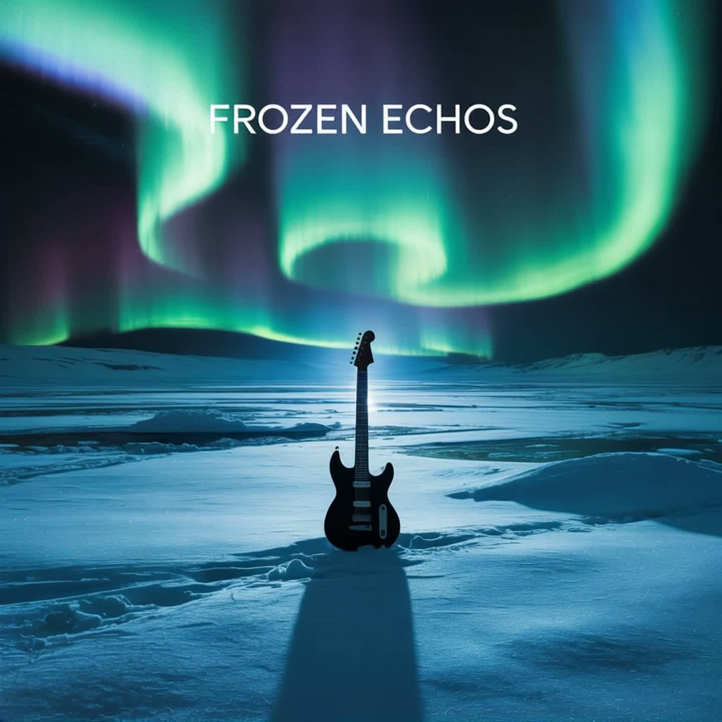 Cold, spacious, melancholic sound, Lead guitar with heavy reverb and delay, playing slow melodic lines, Second guitar adds feedback and soundscapes, Minimal drums with cymbal swells, Deep bass with long sustained notes, Soft synth pads and string textures in the background, Long, evolving, ambient, progressive, cinematic atmosphere, rock, dynamic shifts, layered keyboards, with a blend of smooth grooves and explosive crescendos, jazz, intricate instrumentation, 70s jazz prog-rock