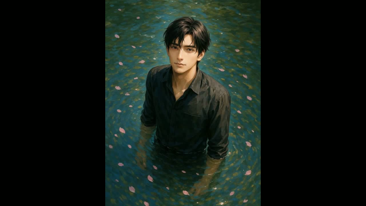 Soft romantic Japanese ballad, Male vocal, Piano and acoustic guitar, Slow tempo, Emotional, tender, dreamy, emo, dramatic, female vocals