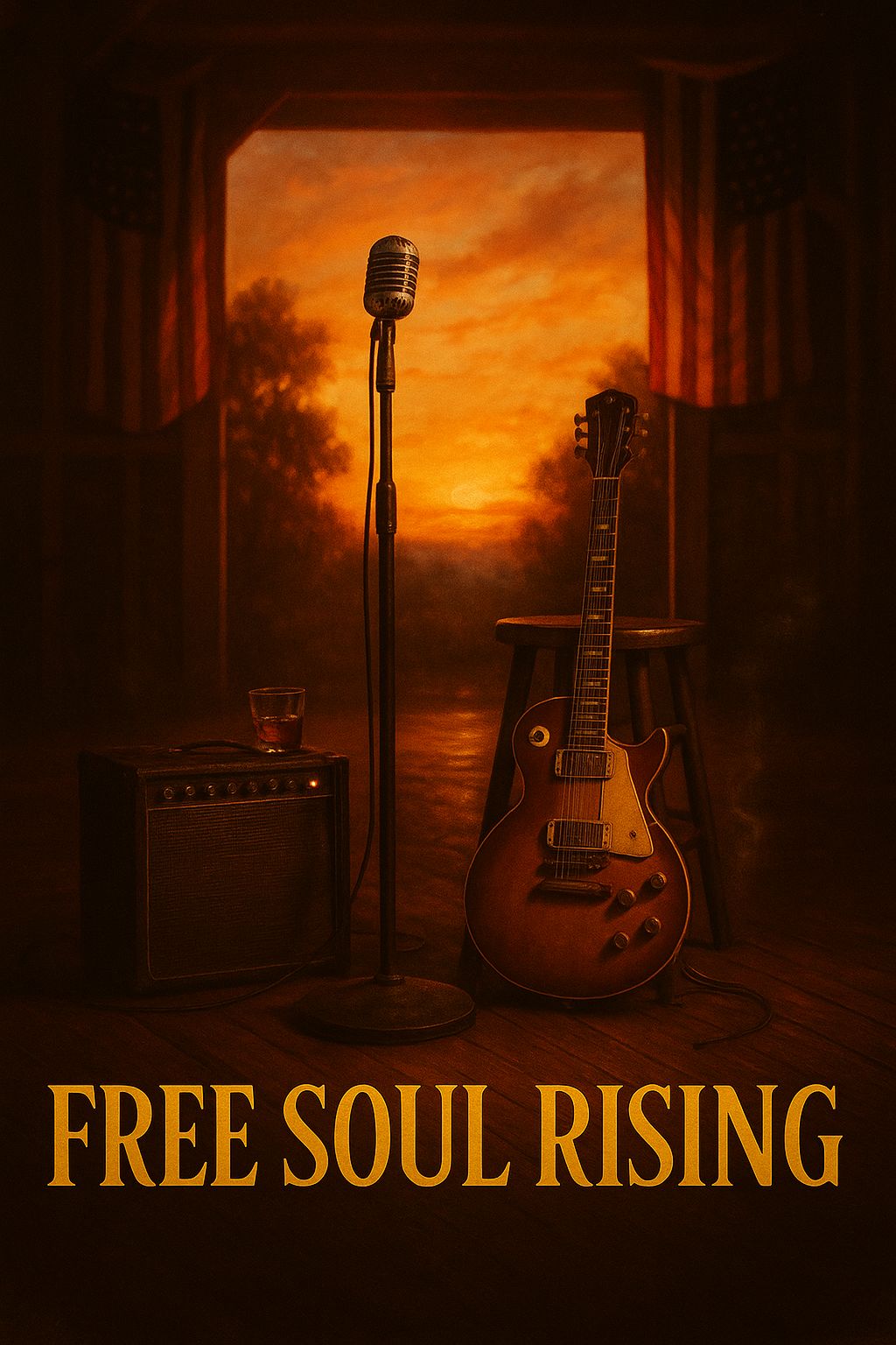 An alt-rock tribute with raspy, soulful male vocals layered over reggae-inspired rhythms fused with rock intensity, Verses ride on a skanking guitar pattern and deep rolling bass, with crisp rimshot snares and subtle organ chords adding warmth, Pre-choruses rise with distorted guitars and tom rolls, building tension before bursting into anthemic choruses, The choruses erupt with layered harmonies, soaring distorted guitars, and thunderous drums, creating a wall of sound that blends rebellion and peace, The bridge drops into a stripped-down reggae groove, vocals almost whispered before surging into a fiery solo with delay-heavy guitar, The sound is powerful, timeless, and alive with rhythm—fusing reggae’s heartbeat with alt-rock’s fire to honor the spirit of freedom