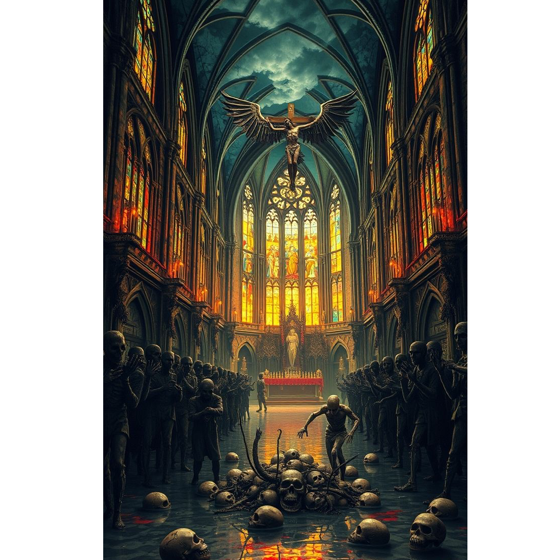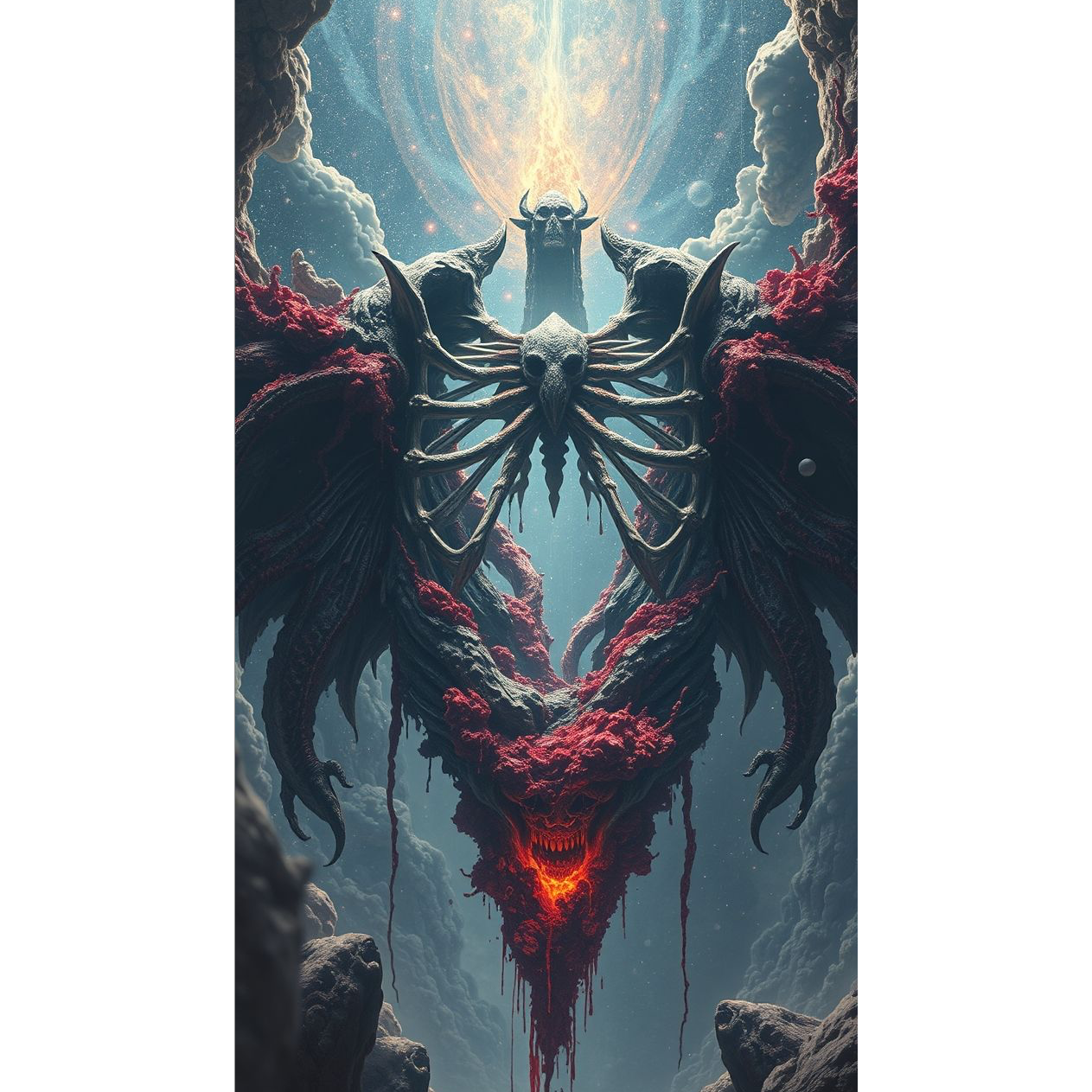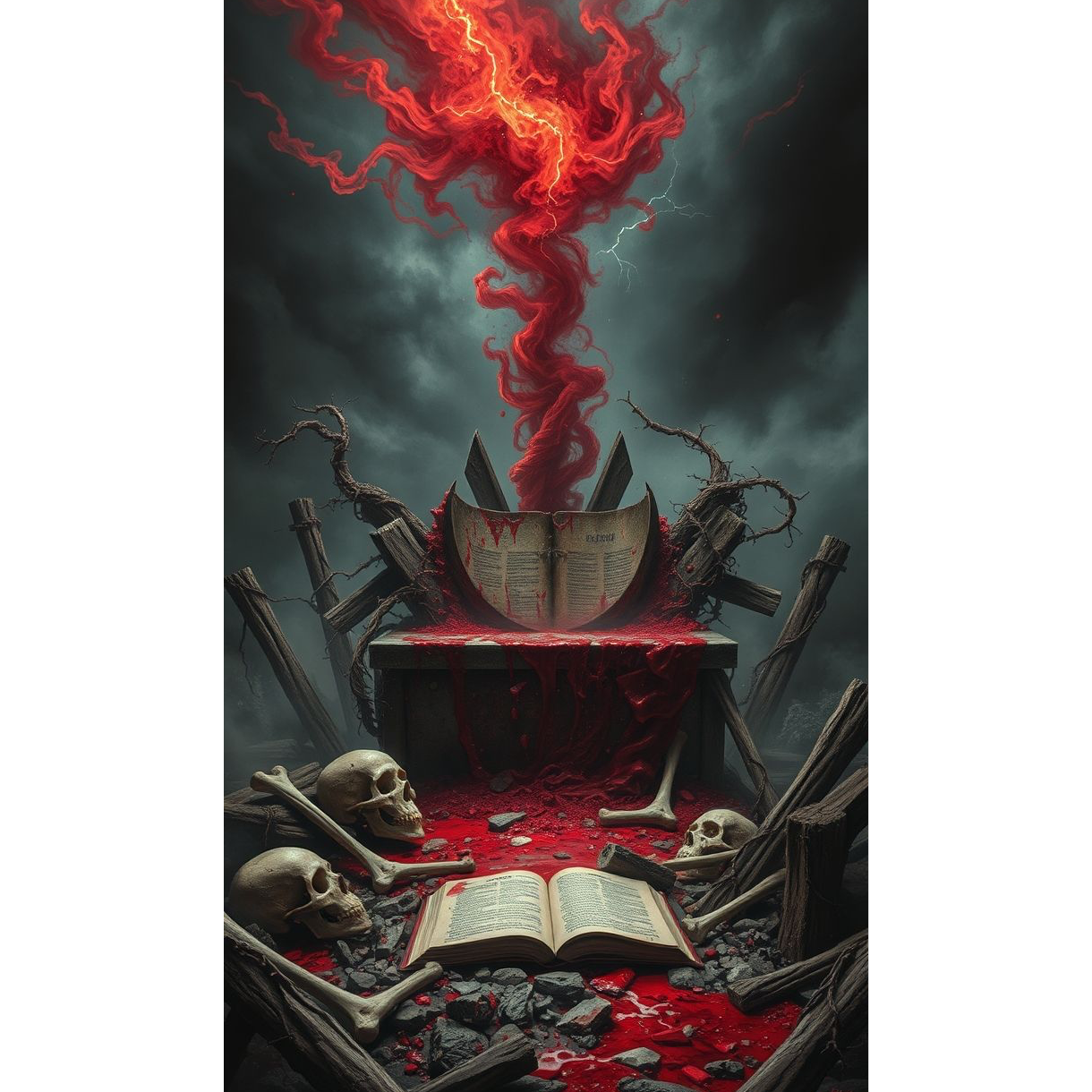 [mood: venomous, apocalyptic desecration, surreal religious blasphemy, brutal and unrelenting]