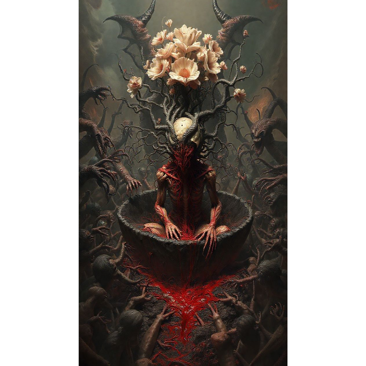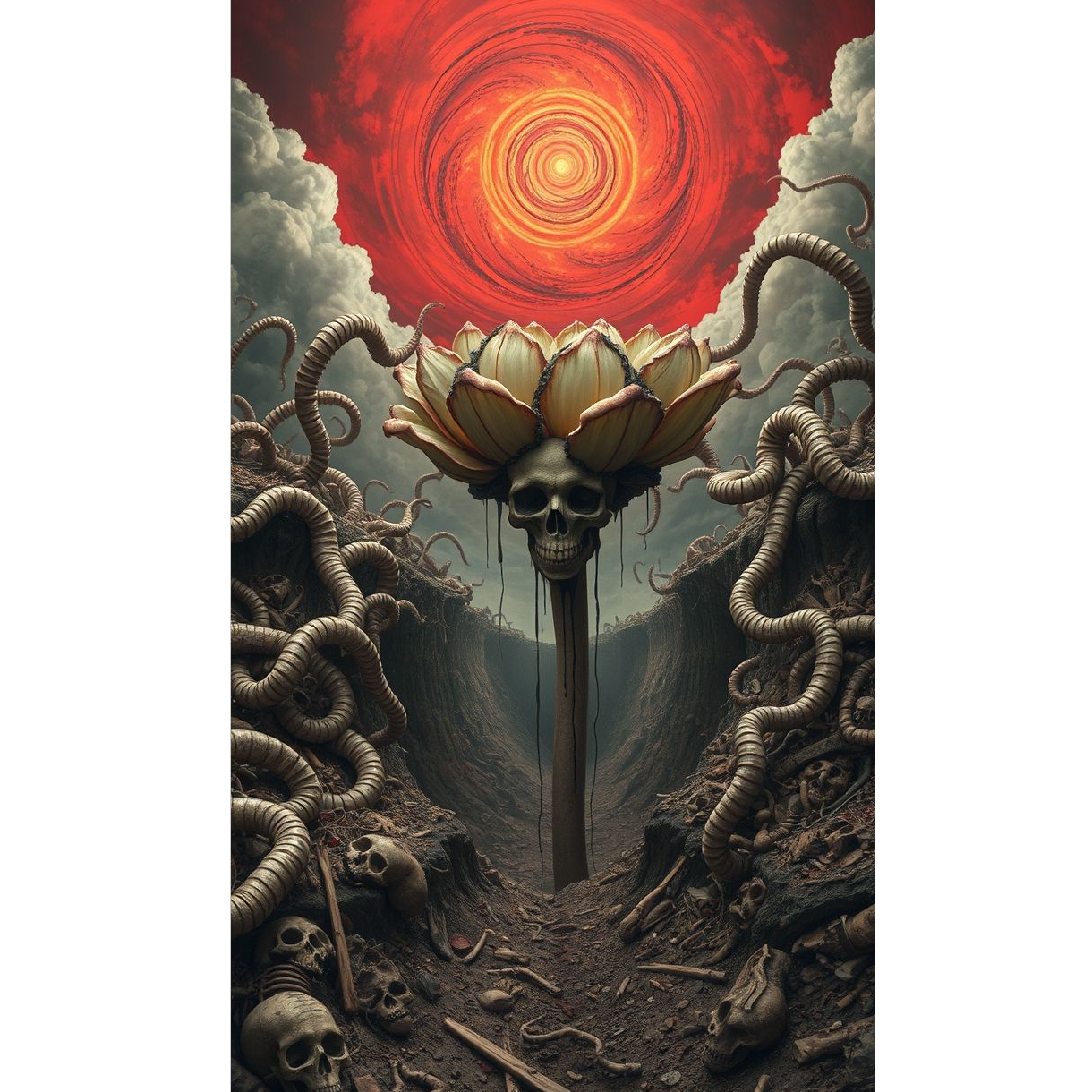 [mood: apocalyptic rot, suffocating horror, surreal parasitic imagery, brutal and unrelenting]