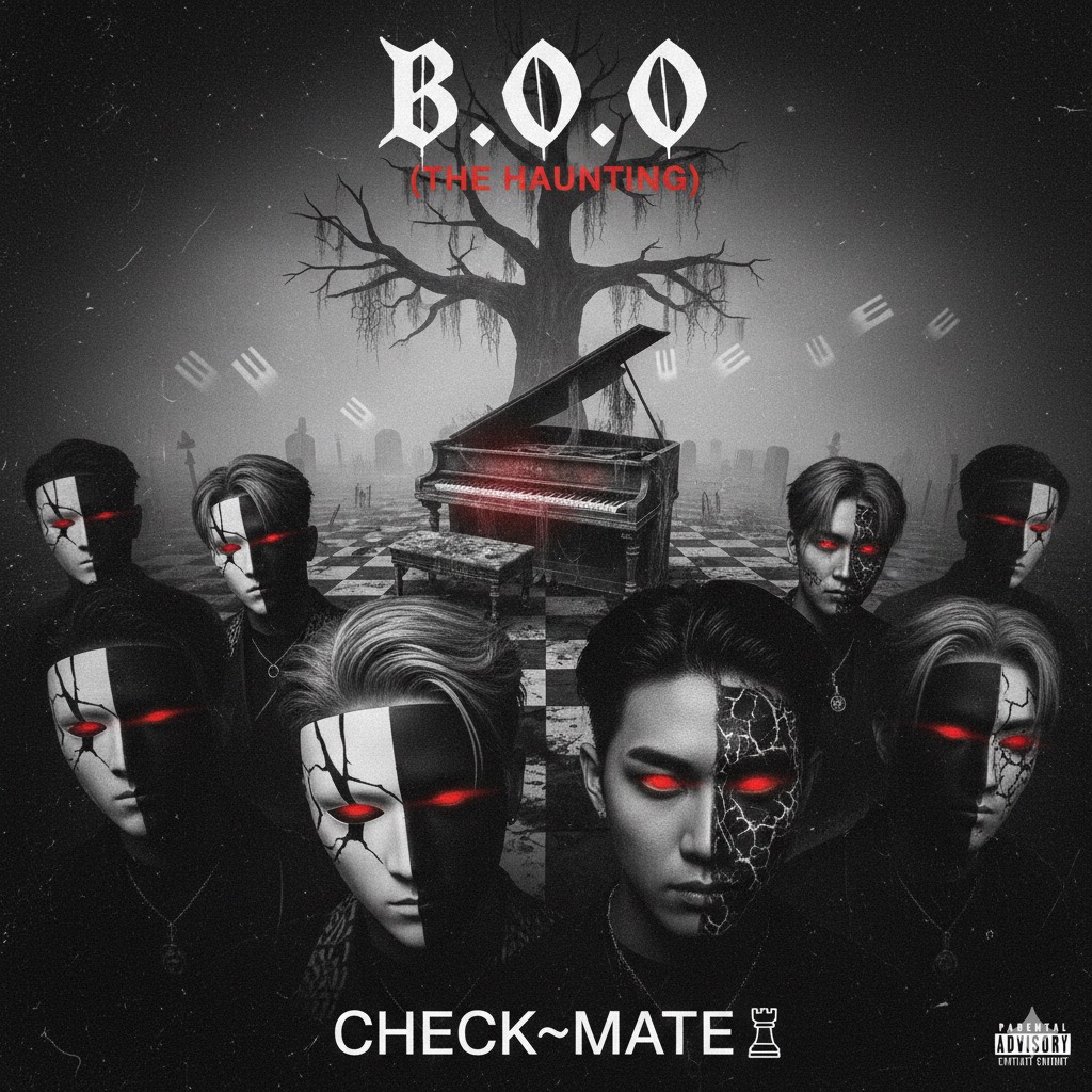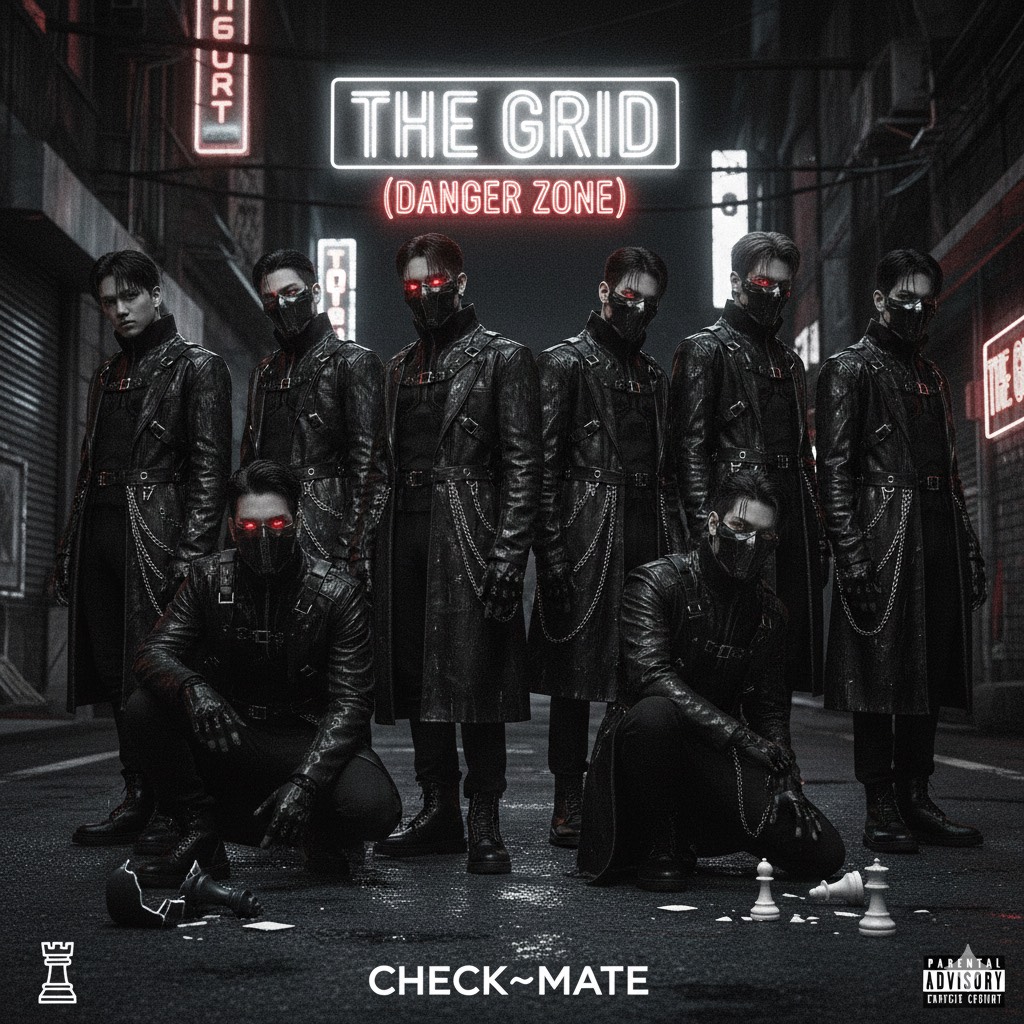 Boy Group + Deep Baritone Double Time Rap + Powerful Group Vocals + Siren High Note Climax + Rough Male Tone + Layered Vocal Loop + Neo-Experimental Hip-Hop + Industrial Bass