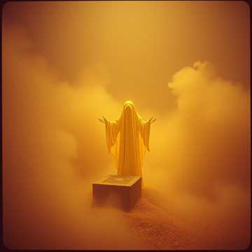 haunting male vocals, dark synth, eerie, hollow chimes, pulsing bass, doom-laden guitar, ethereal choir, ritualistic percussion, crescendoing distortions, ghostly choir, ominous, church bells