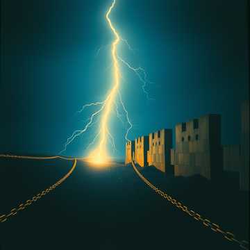 haunting male vocals, dark synth, orchestral elements, ominous, ritualistic, commanding, heavy synth bass, eerie choirs, metallic chain sounds, deep reverberating beats, hopeful rock