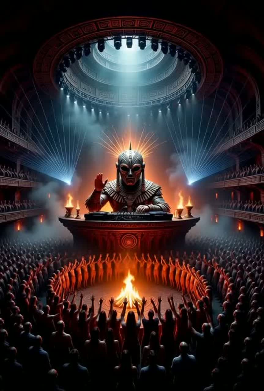 Peak-Time Techno, Hypnotic Techno, Tribal Techno ritual, Hardgroove swing, BPM 132 (130–135 OK), 4/4 driving club banger, DJ-friendly long arrangement (6–7 min) with 32-bar intro + 32-bar outro, steady punchy kick as the pillar (short tail, tight low end), rolling bass but clean sub, tribal drums as main groove (conga, bongo, shakers, clave, rim, toms), call-and-response percussion patterns, hypnotic 2–4 bar loop motif with gradual micro-variation (filters, gating, subtle automation), choir chant hook with multilingual “congratulations” phrases (clean lyrics), vocal stabs and rhythmic chops, orchestral/choral layers used as stabs + pads (not cinematic, club-focused), aggressive glitch FX: microchop, stutter, beat repeat, reverse hits, 1-beat mute, fast cut fills, no tape-stop, industrial spark texture ONLY in Drop 2 (short distortion/bitcrush/formant-warp bursts) then return to clean groove, big peak-time drops, energetic, dark-bright ritual celebration, high-fidelity clean mix, loud c