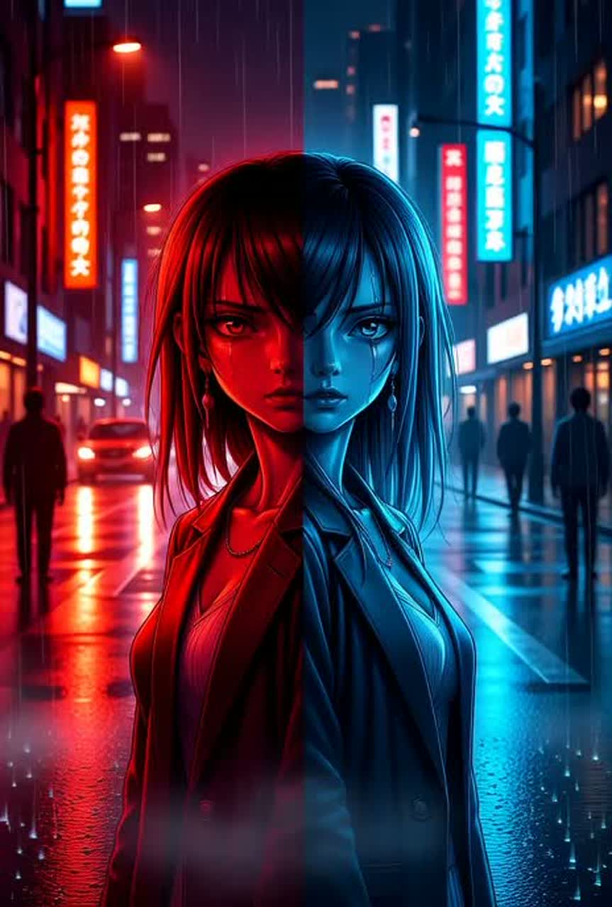BPM 134, Enka × baile funk (tamborzão) cyber remix, Heavy tamborzão groove always driving (intensity shifts by section), deep 808 sub, taiko + 808 hybrid kick, tight claps, swingy hats, strong sidechain pump, Traditional enka lead vocal, mid–low raspy warmth, constant kobushi, pitch dips, vibrato curls, dramatic ma pauses, emotional delivery, Shamisen with bitcrush and distortion, shinobue layered with neon pads, bright saw accents, fm bass stabs, short vocal chops, Call-and-response crowd chants throughout, Glitch is massive but still groovy: stutter edits, beat repeat at 8/16 bar turns, micro-cuts, gated chops, reverse swells, tape-stop flickers, one-beat mute before final chorus, disintegrating glitch outro, Minor-key tension to uplifting finish, station ambience in intro, Clean lyrics, no artist references, Neon-futuristic nostalgia, heroic chant energy, punchy club-ready mix
