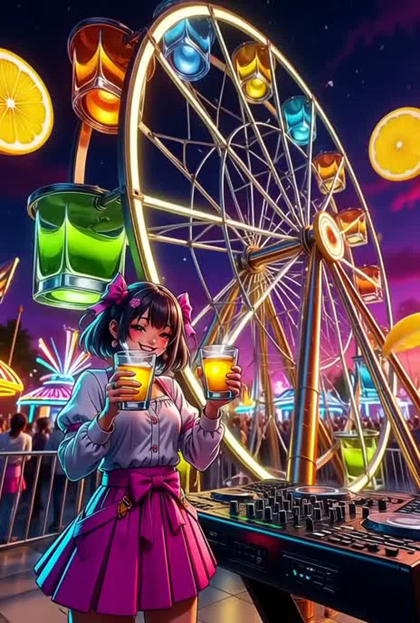 BPM 142, Jersey Club × Kawaii Future Bounce, hard triplet kick bounce, chopped vocal one-shots, staccato samples, call-and-response hooks, aggressive but playful energy, major key bright rave chords, heavy sidechain pump, bouncy festival drop, kawaii bell & mallet plucks, toy piano hits, candy synth blips, glitter arps, fast Moog-like lead runs with baroque ornaments, syncopated accents, micro stutters, beat-repeat, gate chop, tape-stop, bitcrush bursts, 1-beat mute before drops, quick snap-back to groove, modern clean loud mix, stereo left-right ping-pong motion, Japanese girlish edgy ironic vocal, club-ready, chaotic but fun