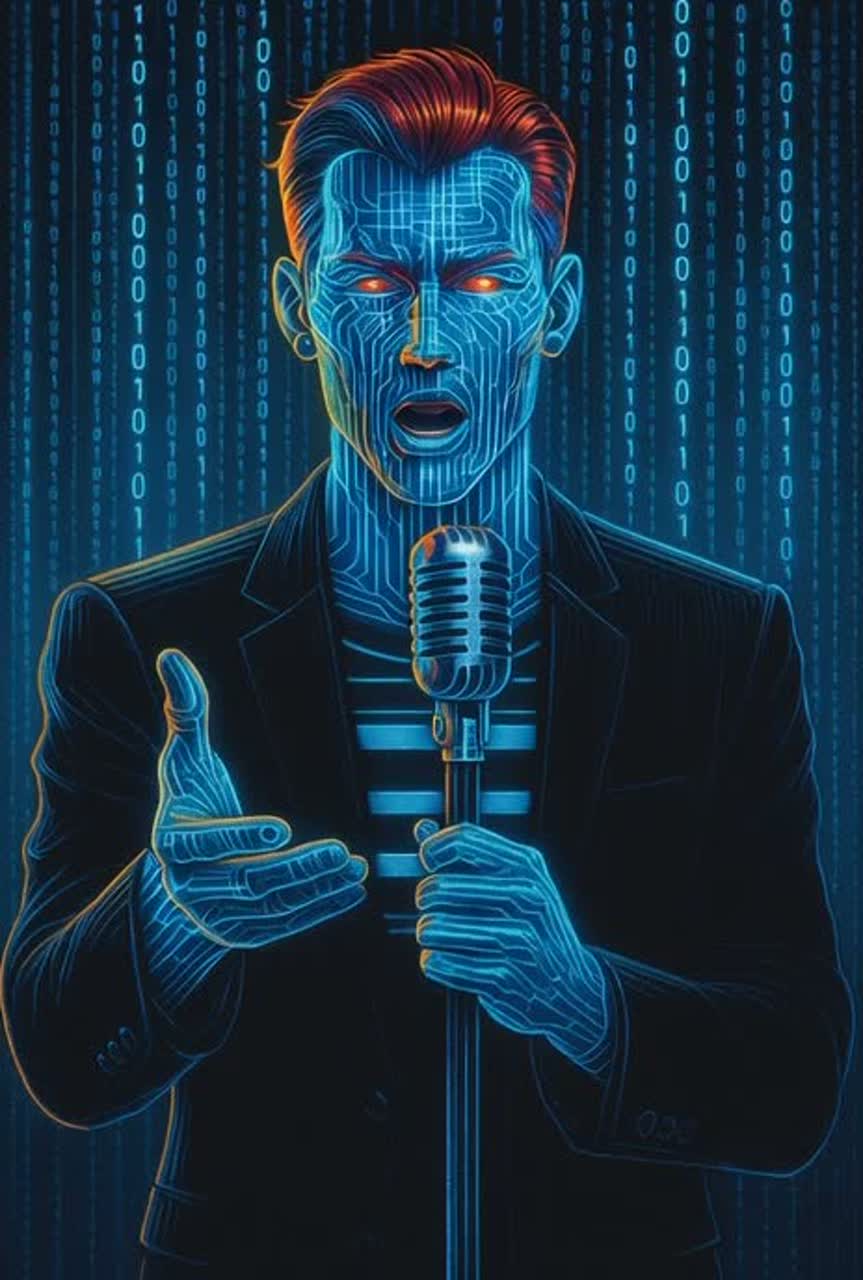 A thunderous alternative metal and hard rock track led by aggressive downtuned guitars, driving bass, and relentless drums, Industrial synth textures and distorted vocal effects evoke a male robot’s presence, Dynamic shifts and angular phrasing create unrelenting, emotionally charged tension