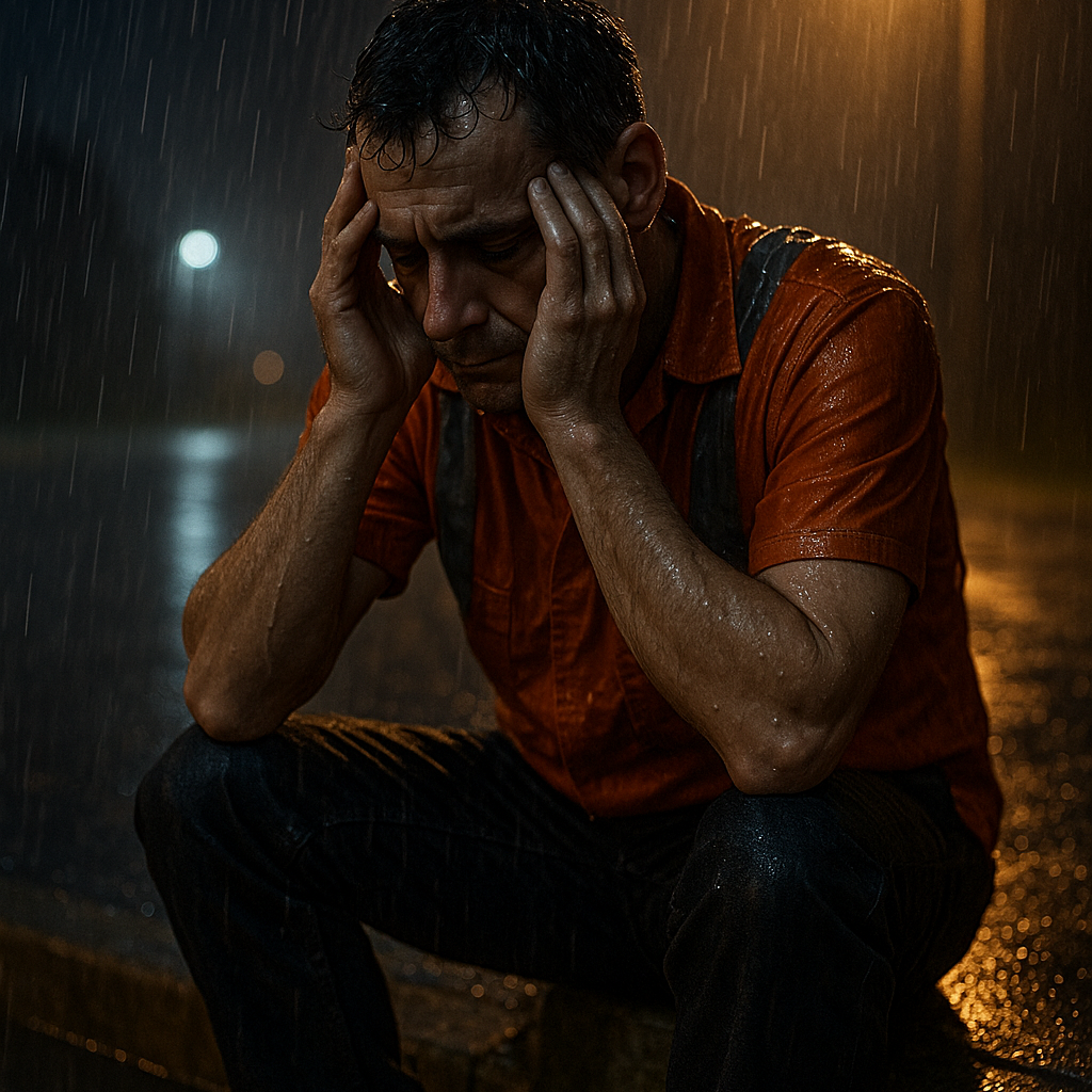 Male Polish vocal, deep and emotional tone, natural rasp, Half-sung, half-spoken delivery — realistic, street, heartfelt, Close-mic recorded with warm compression, subtle saturation, Echo and plate reverb used for space, not overprocessed, Double vocals in the chorus for thickness and power, Background ad-libs low in mix, slight