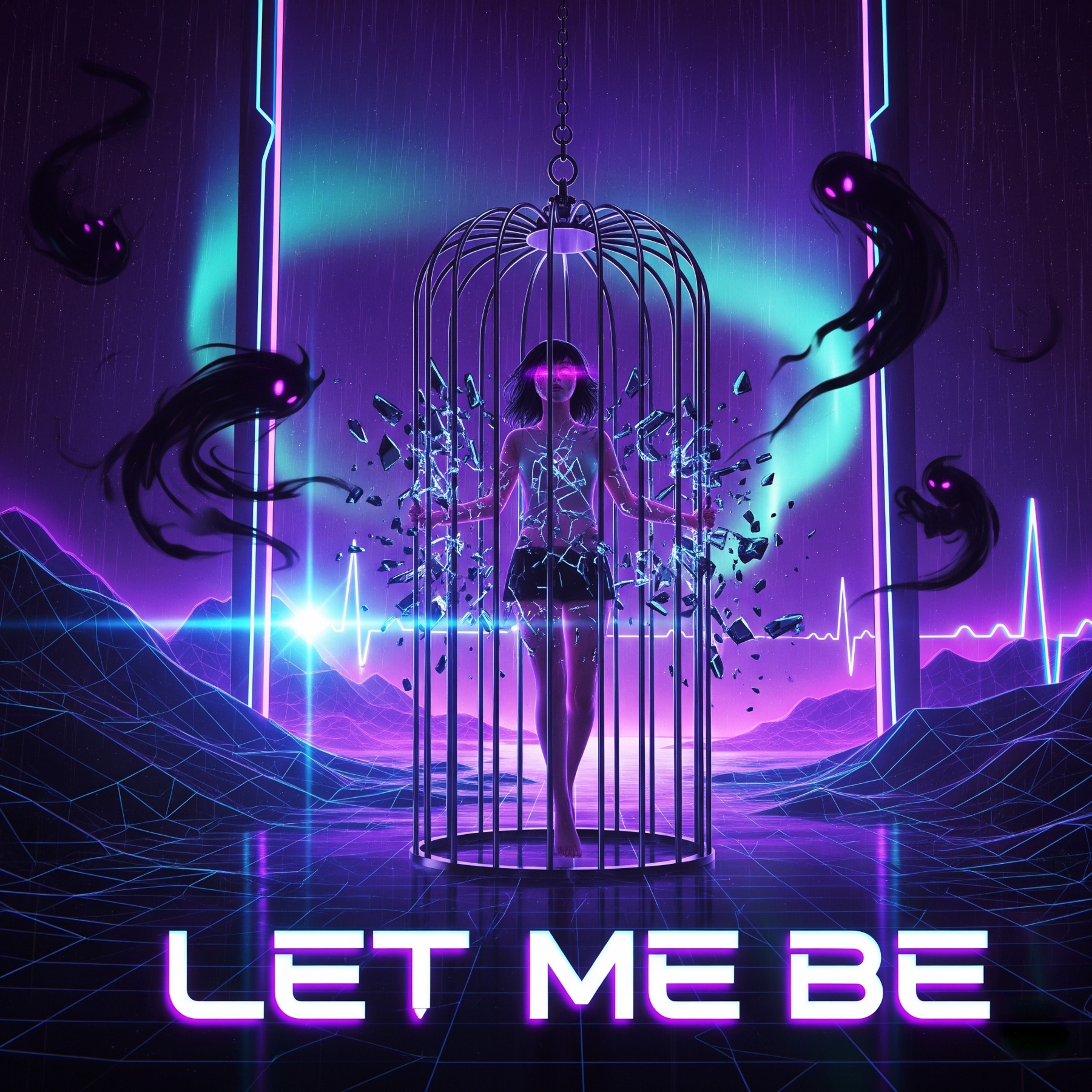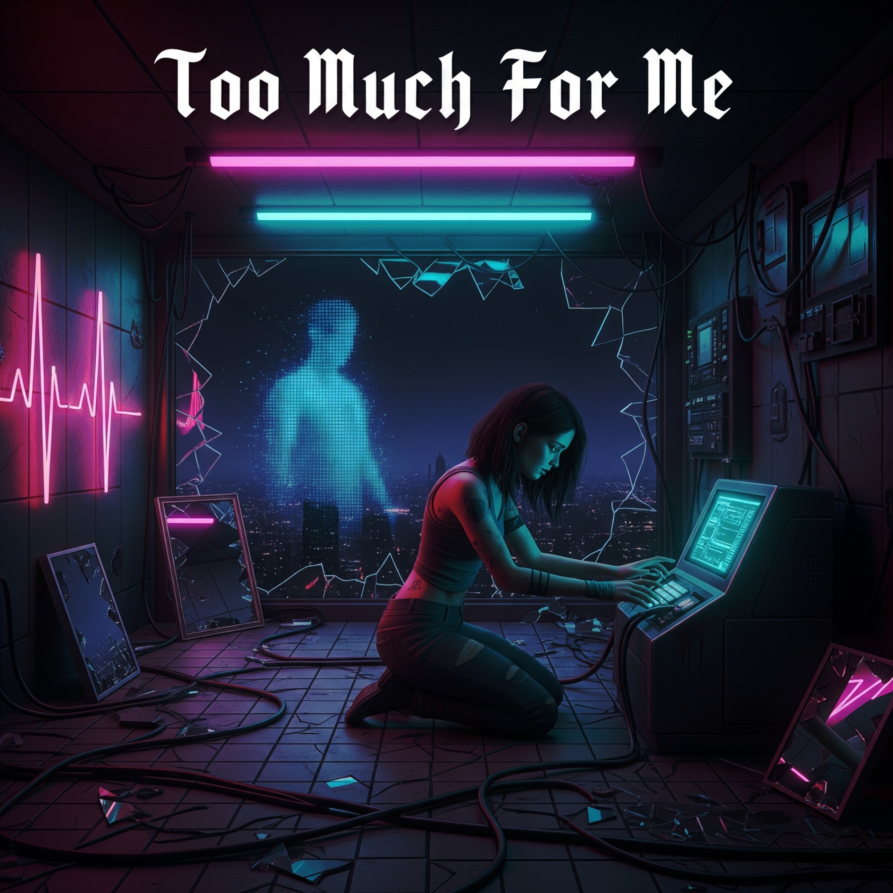 A hybrid track fusing dark trance, darksynth, hard techno, nu-metal, bubblegrunge, and electropop, Begins with dreamy DnB and ambient pads, fading into glitchy trap rhythms, Verses deliver raw vocals over distorted guitars and industrial synths, Pre-chorus shifts to darkwave with cinematic textures and half-time beats, The chorus explodes with trance leads, heavy techno kicks, and layered electropop vocals, Post-chorus softens with ambient guitar and dreamy vocals, Second cycle intensifies all elements with DnB breaks and glitch solos, Closes on a haunting outro of ambient synths and echoed vocals repeating as one, A high-emotion, genre-blending journey balancing aggression and tenderness