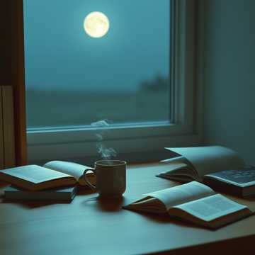 and warm textures for a cozy nighttime vibe, chill, lofi with soft piano, mellow beats, ambient