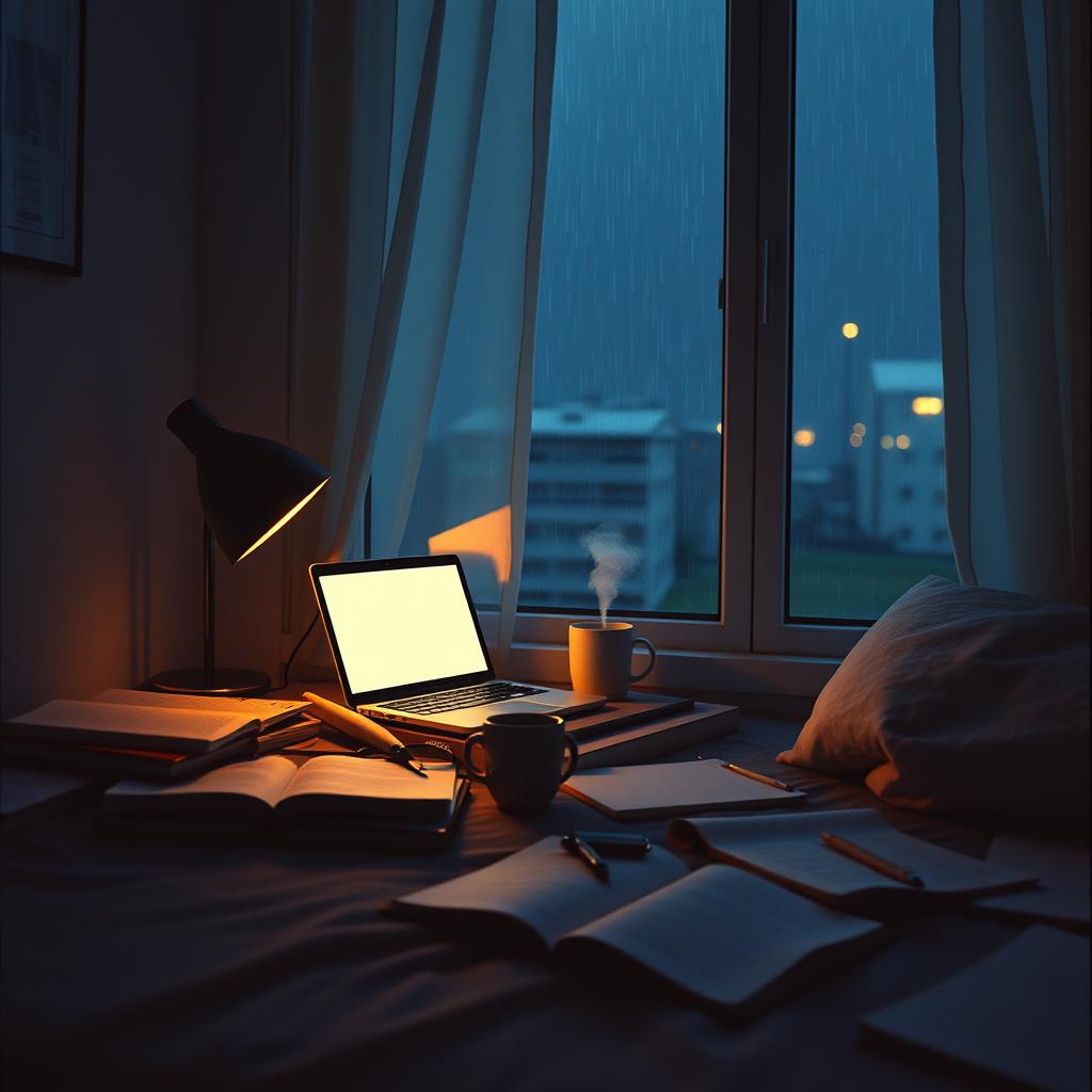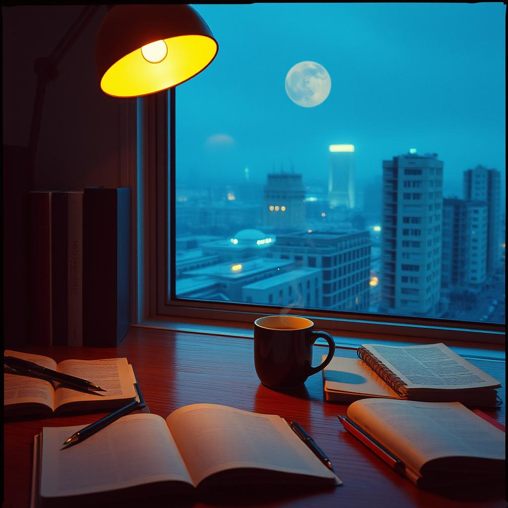 Soft lofi beats over gentle electric piano and vinyl crackle set a laid-back late-night mood, Crisp hi-hats and subdued kicks create a pulsing groove, while lush synth pads and mellow guitar riffs rotate in and out to keep the atmosphere cozy and focused