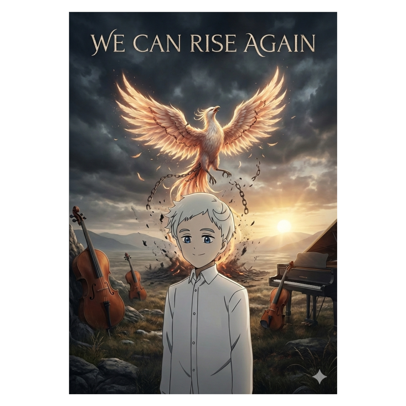 A cinematic post-hardcore anthem staged like a rock requiem, blending orchestral grandeur with emotional band dynamics, Verses are hushed and reverent, driven by piano and restrained strings, while choruses erupt into massive distorted guitars supported by swelling orchestration and thunderous drums, Vocals rise from vulnerable confession into commanding, anthem-level delivery, as if leading a crowd through grief toward hope, The song should feel like standing at the edge of collapse and choosing to march forward anyway