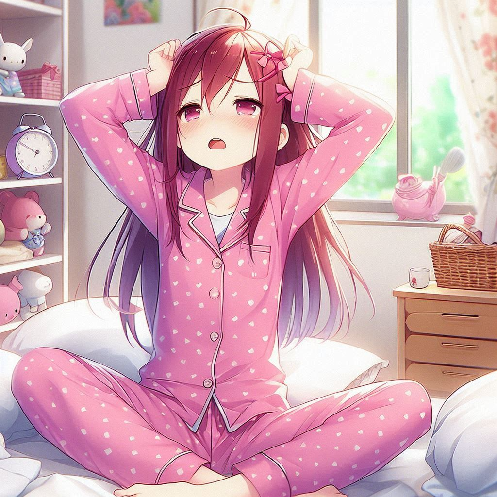 [Mood: endearing morning struggle, sweet but hopeless]