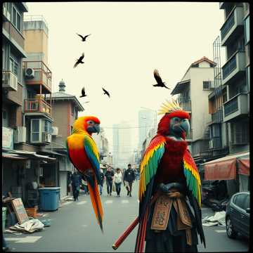 annoucement, radio, glitch, 1950 radio, Rap, melancholic, slow tempo, epic intro, synthetisator, epic beat, snare, sad, aggressive, male voice, charisma, gangsta rap, Youtube poop humor, Confusing and absurd elements, Excessive yelling and confusing narrative, Intelligent and surreal story, Full of "AI AI AI" and "Hell" shouts, Excessive, funny references, underground rap