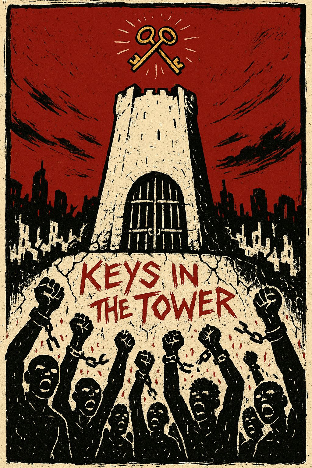 An anthemic alt-punk/political punk protest track with raw energy and biting sarcasm, Tempo 170–190 BPM driven by distorted power chords, gritty bass, and pounding drums, Verses delivered in rapid, sneering male vocals attacking politicians, institutions, and broken promises, Pre-choruses use call-and-response chants, Choruses explode into fists-up gang vocals shouting “Keys in the tower — locked away!” with anthemic defiance, Bridge erupts into chaotic protest chants of “Stone by stone! Tear it down!” followed by a gang chant hook, Outro layers bitter spoken sarcasm with shouted lines fading into distortion, ending with a snide “Thanks for nothing, ” Mood: raw, rebellious, anti-institutional, dripping with defiance and protest-punk venom