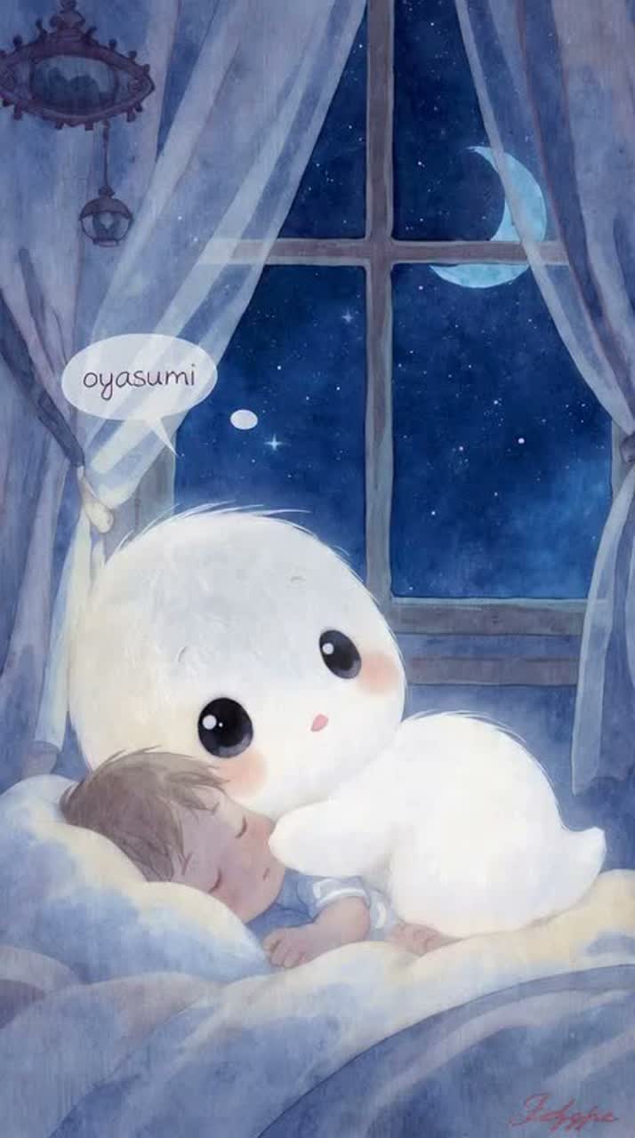 Cute Japanese child voice, Innocent girl or boy narration, Soft whispers, Gentle breathing, Spoken word, Music box background, ASMR, Lullaby atmosphere, Whimsical, Cozy, 432Hz