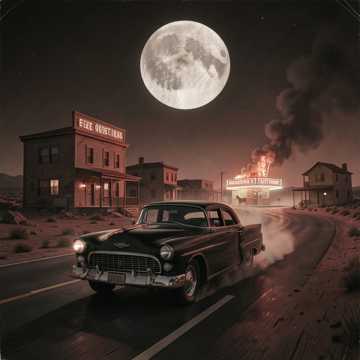 Gritty Outlaw Country, Male and Female Duet, Dark Electric Guitar Riff, Steady Stomp Beat, Harmonica, Reverb-heavy Vocals, 98 BPM