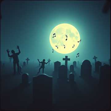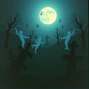 orchestral, with theremin and haunting strings; a chilling, eerie, halloween, cinematic vibe that feels like a ghostly waltz in a moonlit graveyard