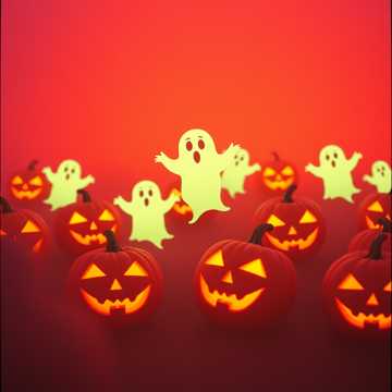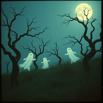 orchestral with eerie strings and xylophone, halloween, ghostly choir accents, playful, happy, spooky, theme