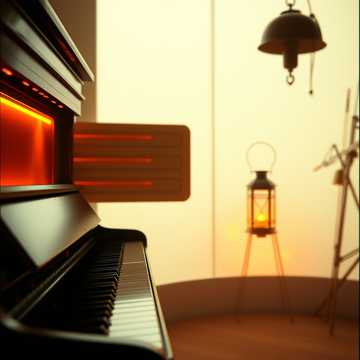End: slow fade on a warm lingering chord, lantern glow, Add subtle swirling arpeggios and star-like chimes in Act II and Act IV, like a rotating night sky