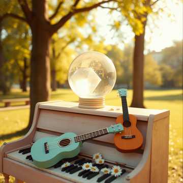 Whimsical Indie-Acoustic, light female vocals, bright piano and ukulele, themes of seeing beauty in the mundane, playful and heartwarming