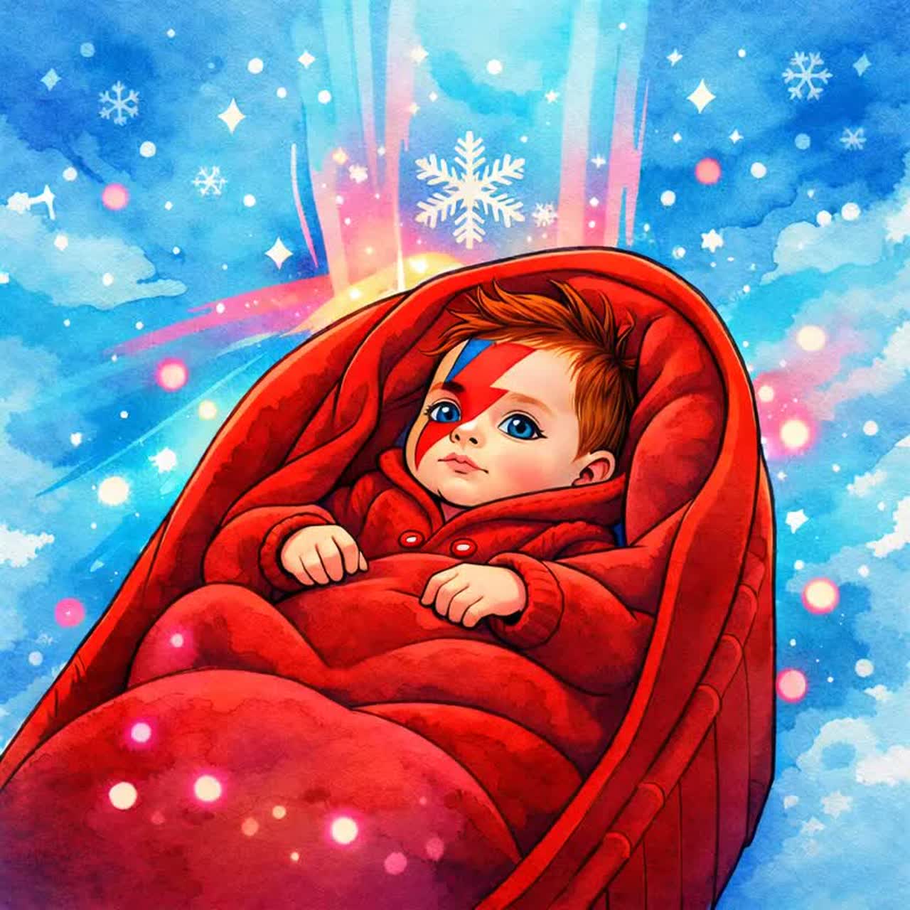Breakbeat, Jpop, funky pop, male vocal "David Bowie's style", Catchy melody, Bright, dynamic, joyful, hopeful, Performance with synth, Tabla, glockenspiel, xylophone, marimba, and TR-808, Twin TR-808 kits, one TR-808 lays down a solid beat throughout the entire track, another TR-808 lays down breakbeat rhythms, Tabla-driven rhythmic compositions, featuring hypnotic hand-played tabla and TR-808 patterns as the primary groove, glockenspiel, xylophone and marimba repeat catchy and rhythmic loops, These three instruments form polyrhythms, building momentum for the breakbeat, The synthesizer plays a catchy solo phrase during the intro and interlude, its tone reminiscent of the Prophet-5 style, The motif: On cold days, I get into my sleeping bag