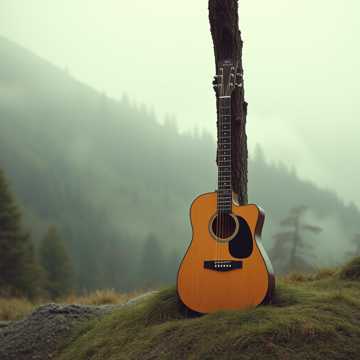 Acoustic folk piece in a major key, featuring a single acoustic guitar, The guitar plays a fingerpicked melody with a consistent tempo, creating a relaxed and somewhat melancholic atmosphere, The chord progression is simple and repetitive, emphasizing open chords, The melody is played on the higher strings, with occasional bass notes providing harmonic support, There are no vocals or other instruments present, The production is clean, with a natural acoustic sound and no noticeable effects, Banjo, Cello, and Mandolin accompany for a mountain home vibe, Big reverb, mysterious production