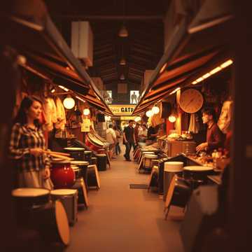 Frenetic pulsing rhythms on upright bass, cello, banjo, mandolin, and acoustic guitar, Footstomp and clap rhythms with jangly keys, unison lines featuring two or more instruments along with rhythmic breakdown with all instruments emphasizing the same beats, Close sounding instrument like in a tight corner of a coal mining town marketplace