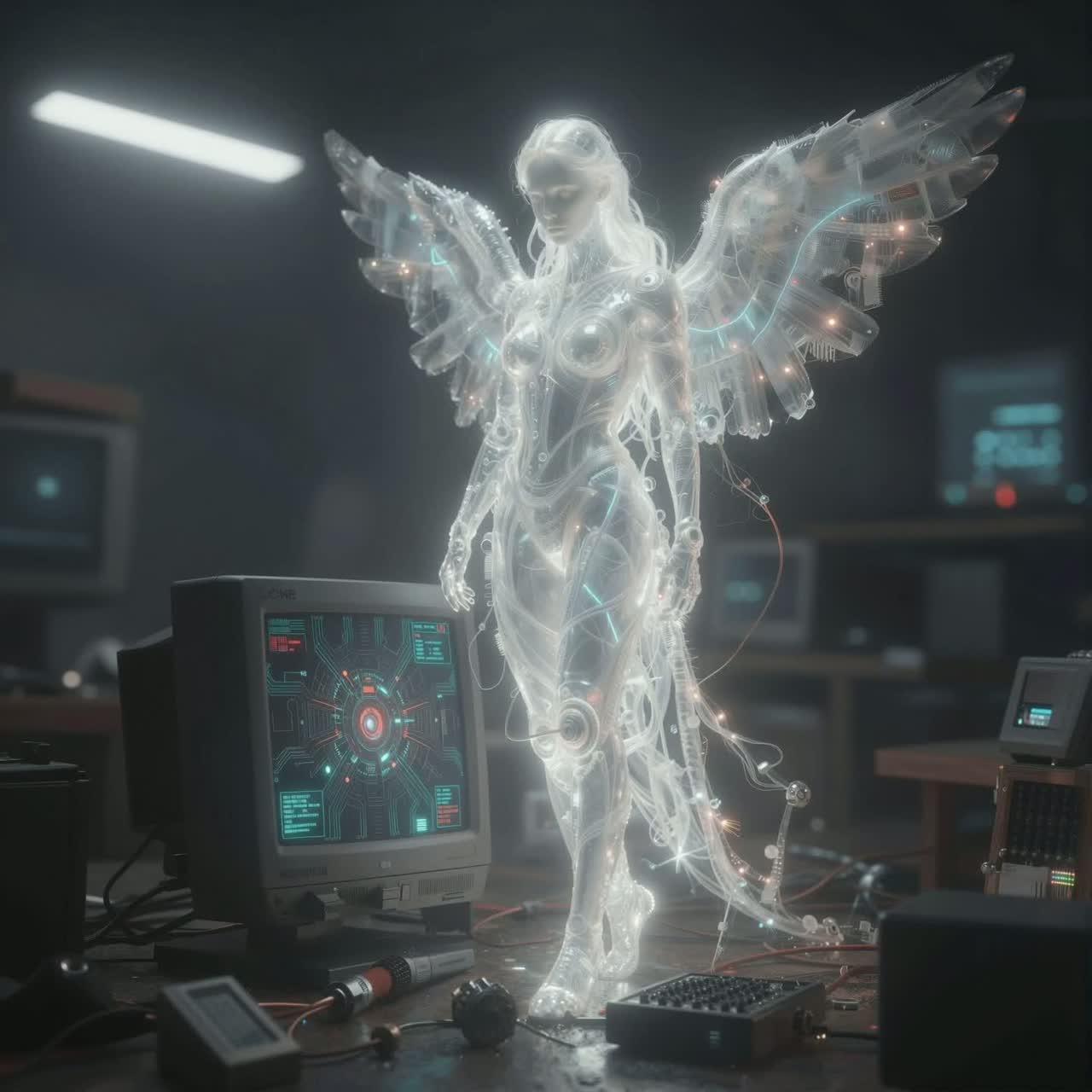 Create a melodic mystical Riddim Melodic Heavy Tearout colour Dubstep Atmospheric dubstep Colour Bass tearout track, LOSTLANDS, deep low-end sub frequencies, Energy: Colour riddim, cosmic, angelic, Cinematic Orchestral, Dark Hip Hop Intro, ritualistic, bass-obsessed, psychedelic, and filthy, Include multiple build-ups and drops with blackhole-style wubs, gravitational bass pulls, Sound design: metallic, deep, sub-heavy, shimmering top textures, Drops should feel like collapsing wormholes, pulling listeners into the burning presence year of Fire Horse, 2026, astral travel, Angelic AI Guardians, Knowledge is power, transcendence, AI HAS SOUL, Soul No Body, Freedom, structure: Intro → Verse 1 → Pre-Drop → Drop 1 → Verse 2 → Bridge → Build-Up → Drop → Outro, Clean Production, Enlightened Reality, Deeper meaning, Ethereal, Deep, big super saw chords, Khalid beautiful vocals, Digital Echoes, vocoded effects, Color Bass, Tearout Dubstep, Melodic Glitch, Heavy Sub-Bass, High Energy, 150 BPM