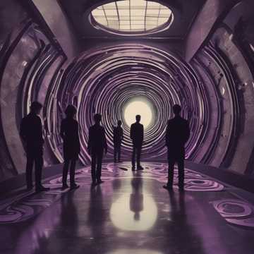 A surreal, genre-blurring song opening with ambient pads and swirling synths over pulsing percussive bass, Distorted acoustic guitar and banjo merge with psychedelic layers, Spacious, slowed trap drums underpin bass male vocals and lush female harmonies, Verses blend dark folk, bluegrass, and outlaw country; choruses erupt with explosive cyberpunk EDM, wild guitar riffs, and dreamy soul elements, Interludes showcase soaring, face-melting solos and nightcore-inspired breaks, building epic cascades of synth and moody atmospherics to a powerful, trippy finale, acoustic guitar stand up bass