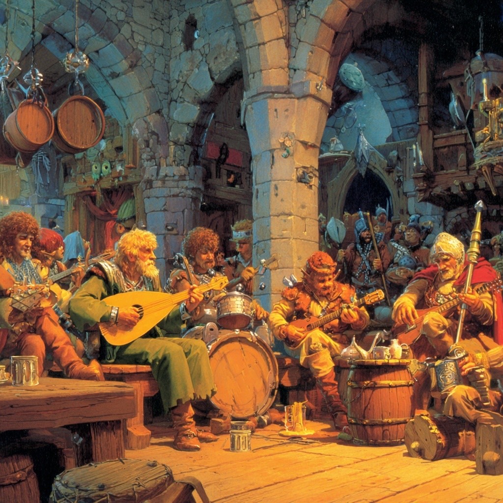 Male folk vocals, Live acoustic performance in a tavern, No microphone or amplifiers, Drinking song, Call and response with small audience in chorus, Upbeat, fun, Rousing, Hard-driving Acoustic Russian folk song with Celtic and Turkish roots, Danceable, Built from voice, hand percussion, foot stomps, acoustic guitar, Kettle drums, Melodic and modal, easy to remember and sing communally, Earthy, resilient, celebratory without drama, shaped by motion, memory, and shared rhythm