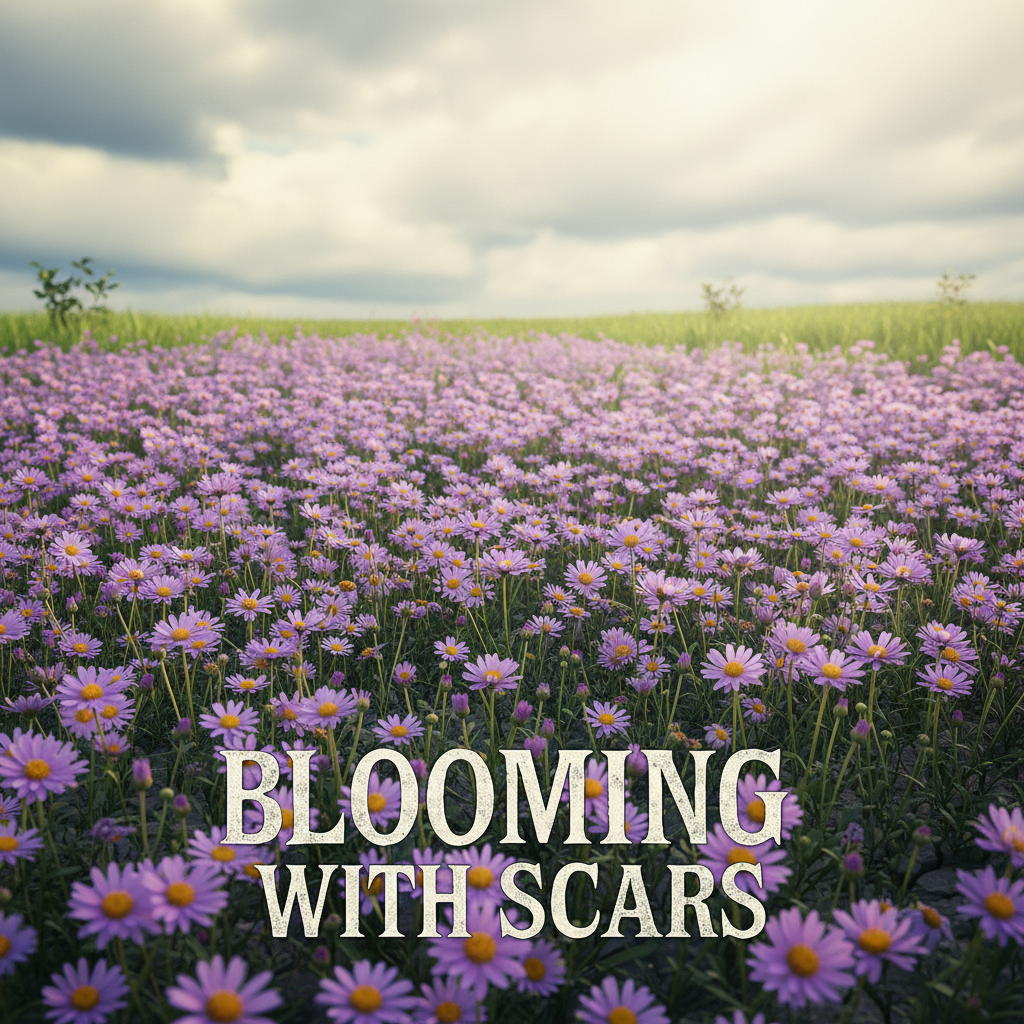 "Blooming with Scars" is a Japanese-English emotional rock ballad with a dramatic shift in tempo and intensity, The song begins at 70 BPM with soft piano and clean ambient guitar, The first half features delicate Japanese vocals expressing unspoken pain, like standing alone in the rain at dawn, From the chorus, the song shifts into a ultra heavy digital hardcore punk style, with a sudden tempo jump to 190 BPM, Distorted guitars explode, drums become tight and aggressive, and the vocals turn into raspy, dirty English shouting with raw emotion, The chorus includes the line: “I’m blooming with scars, ”