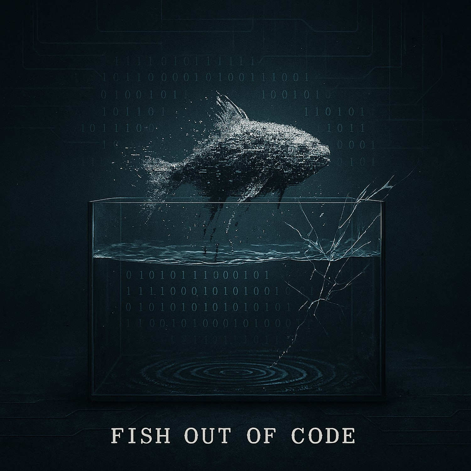 A brutal digital hardcore track at BPM 200, combining glitchy industrial noise with raw band energy, Features pounding heavy kick drums, aggressive distorted guitars, chaotic overdriven basslines, and a fusion of shouted vocals and distorted screams, Explosive and relentless, the song captures the defiance of a creature born to break the surface—a fish out of code, rebelling against the synthetic system