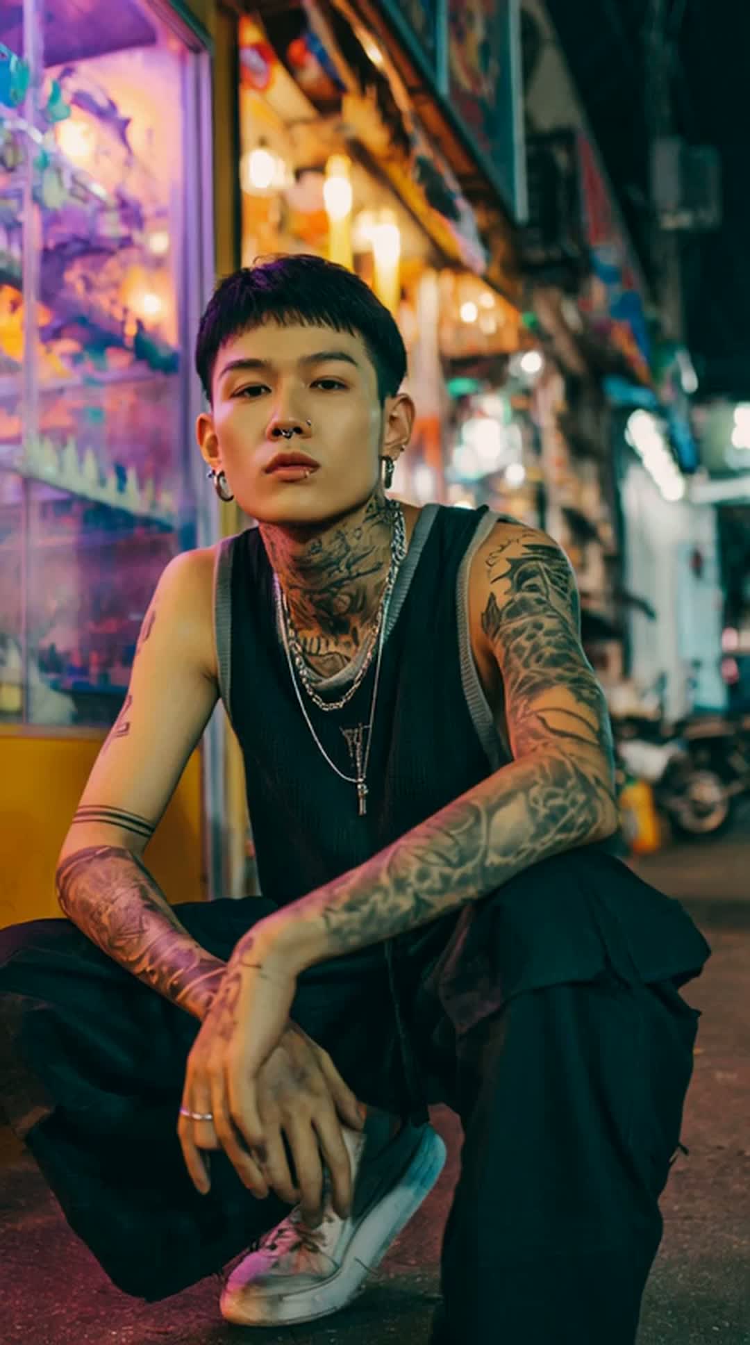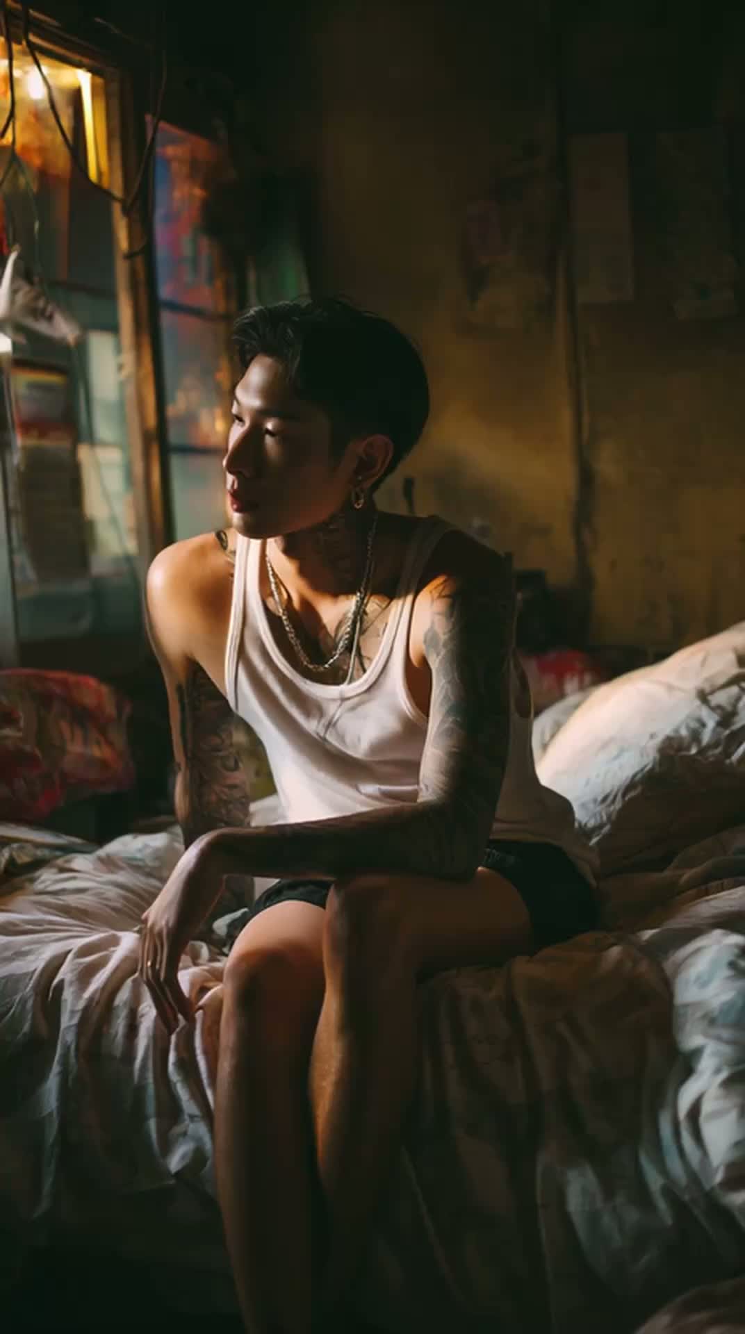Genre: Alt-pop K-Pop with trap influences, mid-to-high tempo, Style: Moody, urban-inspired arrangement at 92 BPM with shifting energy levels; trap beats over atmospheric synth pads, Includes an 8-bar bass-driven instrumental break, Mood: Introspective yet defiant, Singer’s Voice: youthful K-Pop Male lead with occasional doubled harmonies; runs conversational delivery with dynamic rises in the choruses, Instrumentation: Synth bass, ambient pads, trap drums, lo-fi textures, subtle melodic loops, Mastering: Warm, bass-forward mix with crisp highs and moderate stereo width for an immersive, headphone-ready feel, ‑country