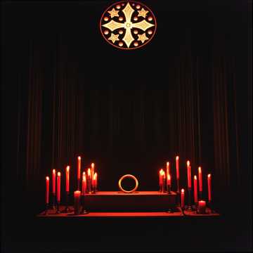 A dark ambient piece featuring a sustained, low-frequency drone throughout, The primary melodic element is a high-pitched, sustained string-like synth pad, creating a sense of unease, A secondary, slightly lower-pitched synth pad provides harmonic support, The soundscape is punctuated by a series of distinct, percussive metallic clangs, which are irregular in their timing and create a jarring effect, There are no traditional drums or rhythmic elements, The overall tempo is extremely slow, almost static, The piece is entirely instrumental, with no vocal presence, The mixing emphasizes the low-end drone and the high-end synth pads, with the metallic clangs cutting through the mix, Reverb is used extensively on all elements, contributing to a vast, cavernous atmosphere, The piece evokes a sense of suspense and desolation